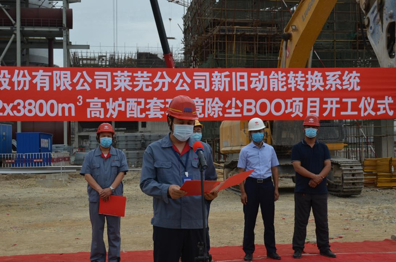 2020年6月16日,公司總承包的山鋼股份萊蕪分公司新舊動(dòng)能轉(zhuǎn)換升級(jí)改造2*3800m3高爐配套環(huán)境除塵BOO項(xiàng)目舉行了開工儀式。萊蕪分公司新舊動(dòng)能轉(zhuǎn)換指揮部田慶元經(jīng)理、萊蕪三控冶金建設(shè)監(jiān)理事務(wù)所沈桂聯(lián)經(jīng)理、我公司劉洪亮副總經(jīng)理及其他相關(guān)單位領(lǐng)導(dǎo)出席了開工儀式,劉洪亮副總在開工儀式上講話,九點(diǎn)五十八分田慶元經(jīng)理宣布項(xiàng)目開工。