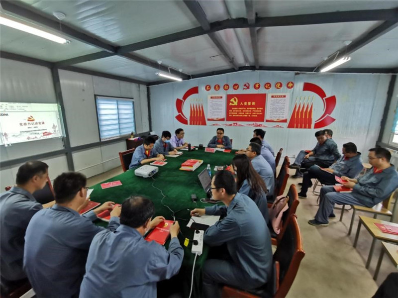 2020年7月3日,山鋼萊蕪分公司高爐項目部臨時黨支部、脫硫脫硝項目部臨時黨支部,邀請黨委書記谷卓奇同志到建設(shè)一線為黨員干部職工講黨課。