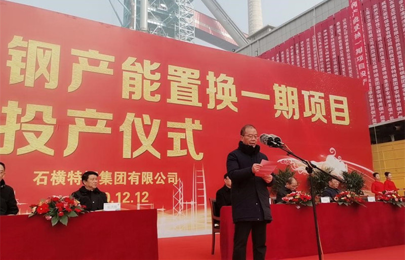 12月12日,董事長魏新民出席泰安特種用鋼產(chǎn)能置換一期項(xiàng)目投產(chǎn)儀式并致辭。
